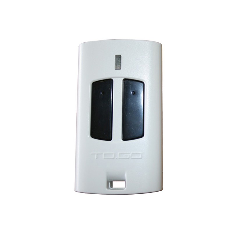 Mando de garaje marca BENINCA, modelo TO GO 2WP de 2 botones color negro. La frecuencia de este mando es de 433, 92 MHz y la codificación se realiza por sistema de switch.