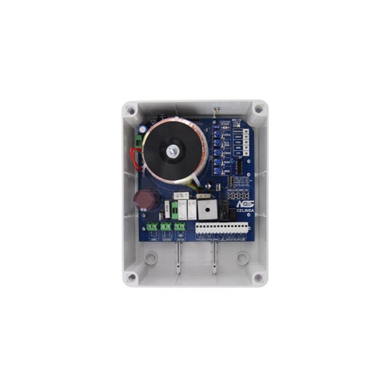 Esta centralita celinsa está diseñada para gobernar un motor de puertas basculantes o seccionales con alimentación a 24 voltios.