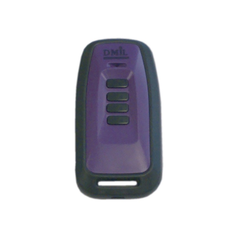 Mando de garaje marca DMIL, modelo GO4DM de 4 botones. Este mando a distancia es de frecuencia 868.8 MHz Rolling Code y la codificación se realiza mediante autoaprendizaje.