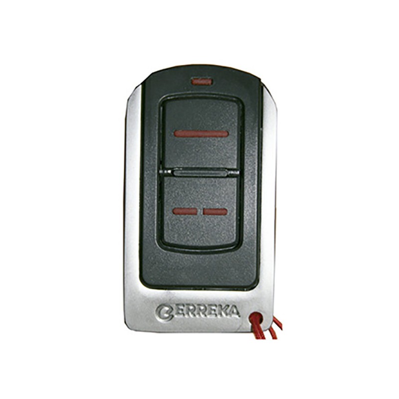 Mando de garaje marca ERREKA, modelo IRIS IR28 de 2 botones. Este mando a distancia es de frecuencia 868,35 MHz Código EVOLUTIVO TIPO KEELOG.