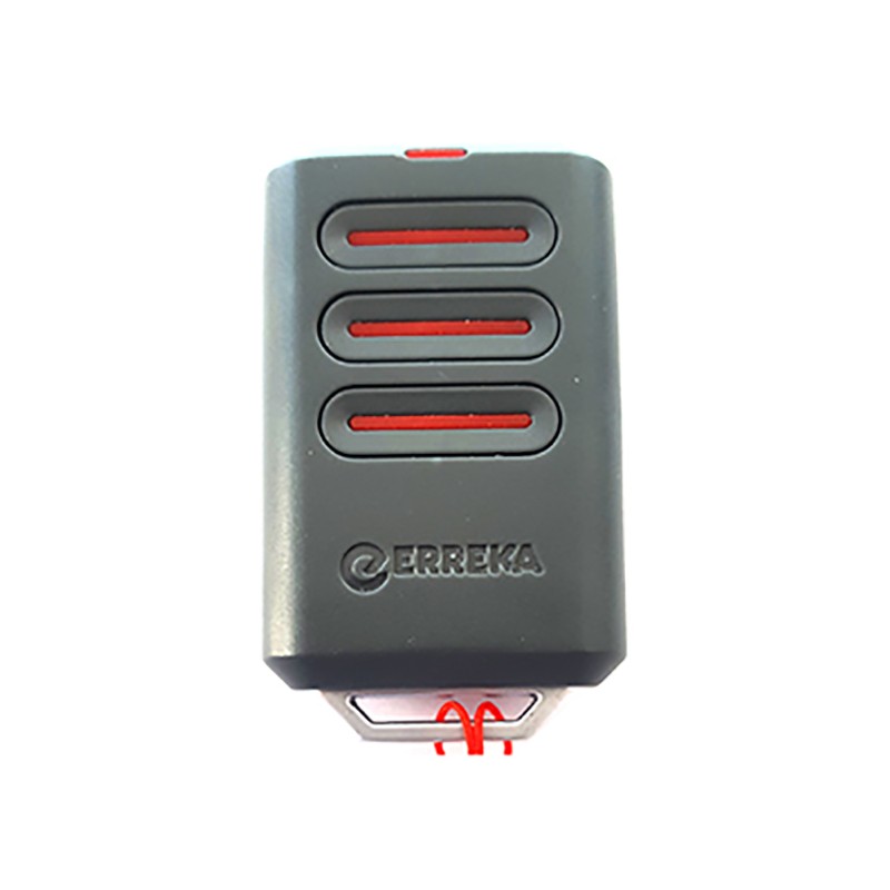 Mando de garaje marca ERREKA, modelo KUMA KU03 de 3 botones. Este mando a distancia es de frecuencia 433.92 MHz Código FIJO TRINARIO 8 SWITCH