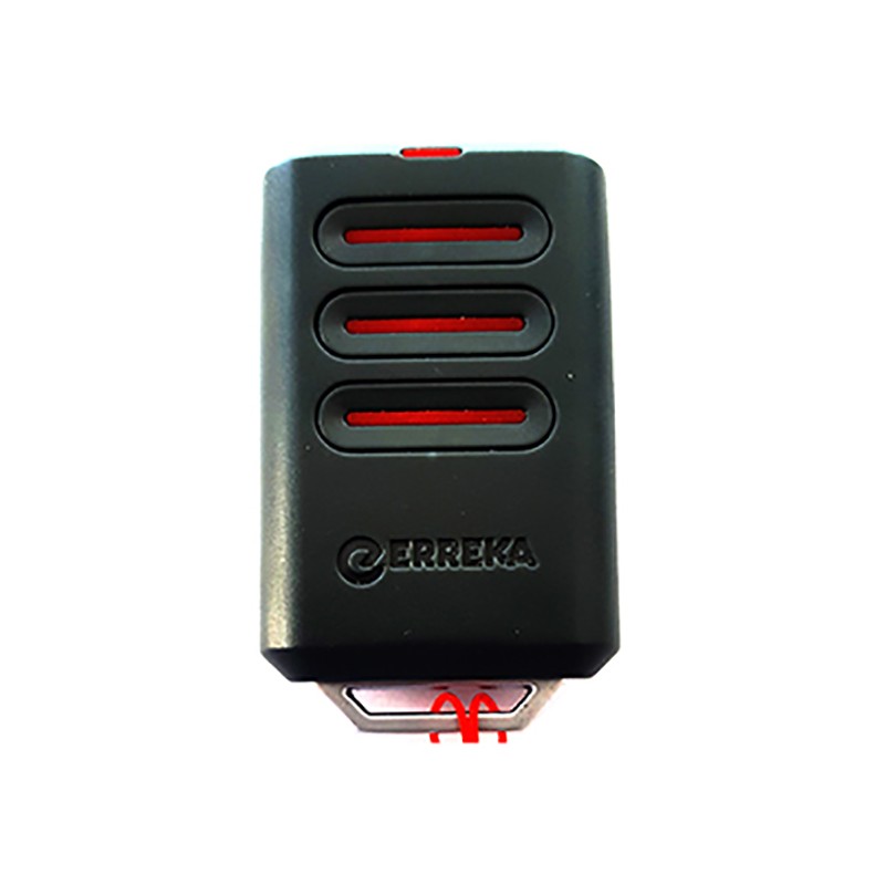 Mando de garaje marca ERREKA, modelo KUMA KU38 de 3 botones. Este mando a distancia es de frecuencia 868.35 MHz Código FIJO TRINARIO 8 SWITCH