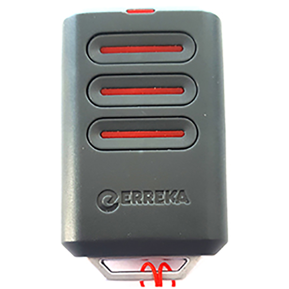 Mando de garaje marca ERREKA, modelo LUNA 3 de 3 botones color rojo. La frecuencia de este mando es 433.92 MHz y la codificación se realiza por sistema de switch.