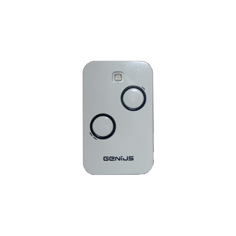 Mando de garaje marca GENIUS, modelo TX2JLC868 de 2 botones. Este mando a distancia es de frecuencia 868 MHz Rolling Code y la codificación se realiza mediante grabación en el receptor.