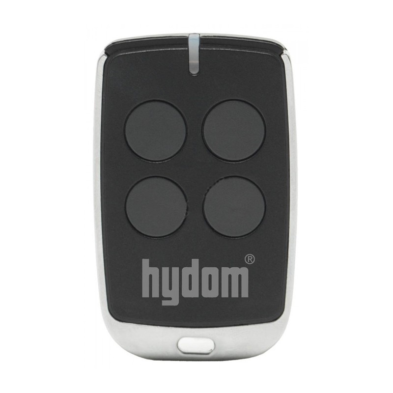 Mando de garaje marca HYDOM, modelo HD4 de 4 botones. Este mando a distancia es de frecuencia 433.92 MHz Evolutivo tipo KEELOG y la codificación se realiza por sistema de grabación en el receptor.