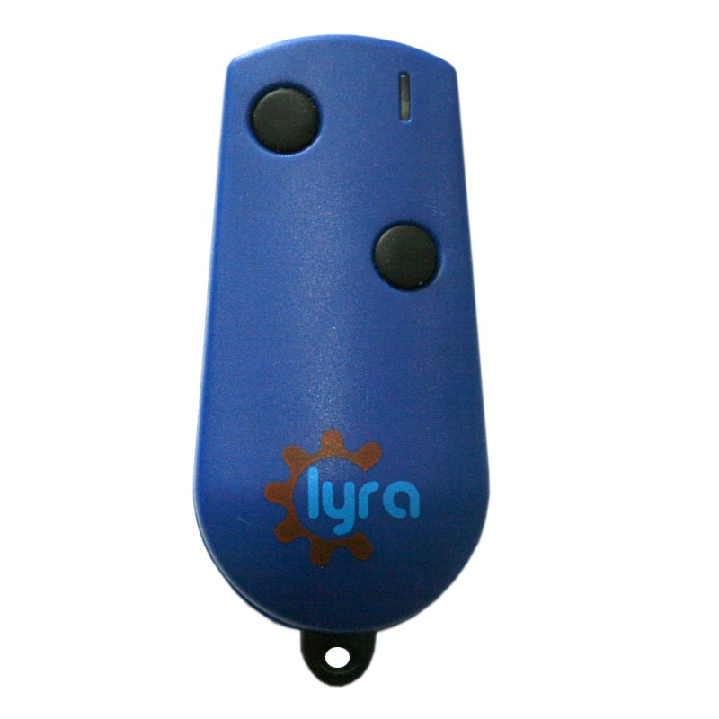Mando de garaje marca LYRA, modelo LYRA2 de 2 botones. Este mando a distancia es de frecuencia 433.92 MHz Código EVOLUTIVO.
