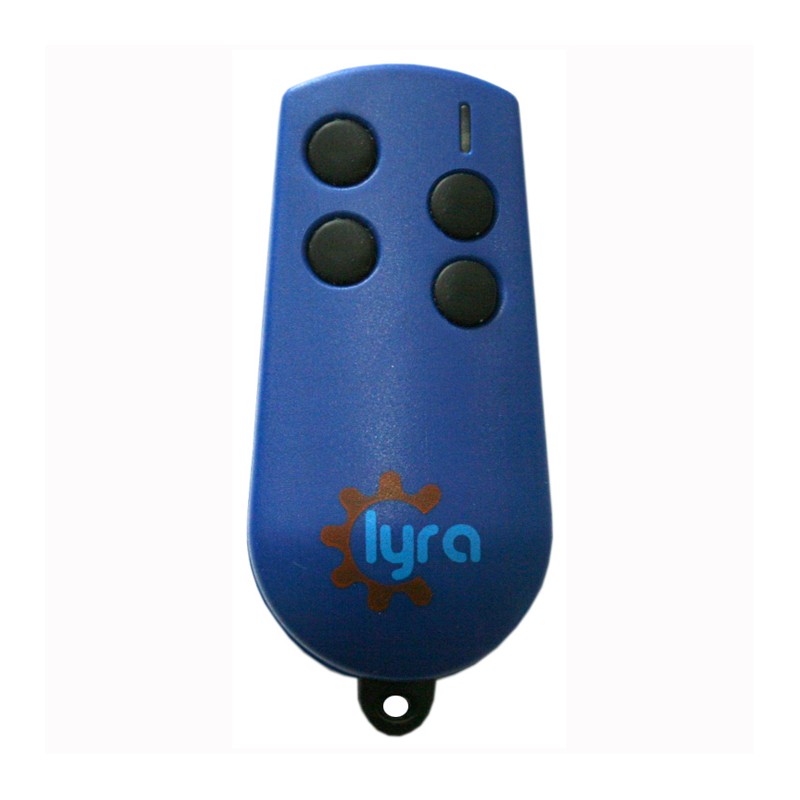 Mando de garaje marca LYRA, modelo LYRA4 de 4 botones. Este mando a distancia es de frecuencia 433.92 MHz Código EVOLUTIVO.