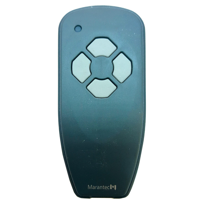 Mando de garaje marca MARANTEC, modelo D304-433 de 4 botones color negro. La frecuencia de este mando es 433,92 MHz y la codificación se realiza por sistema de auto-aprendizaje.