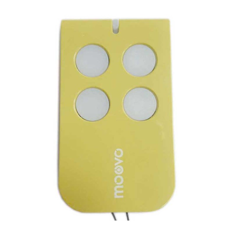 Mando de garaje marca MOOVO, modelo MTV4MO de 4 botones. Este mando a distancia es de frecuencia 433.92 MHz Evolutivo tipo KEELOG y la codificación se realiza por sistema de grabación en el receptor.