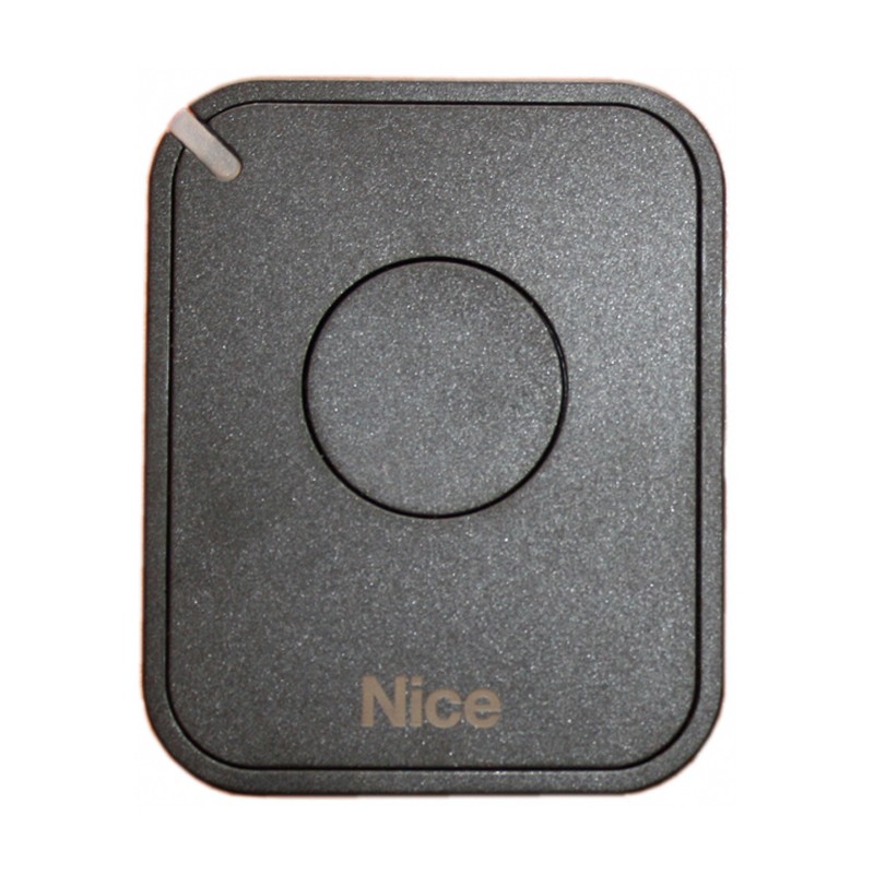 Mando de garaje marca NICE, modelo FLO1RE de 1 botón color negro. La frecuencia de este mando es 433,92 MHz y la codificación se realiza por sistema de grabación en el receptor.