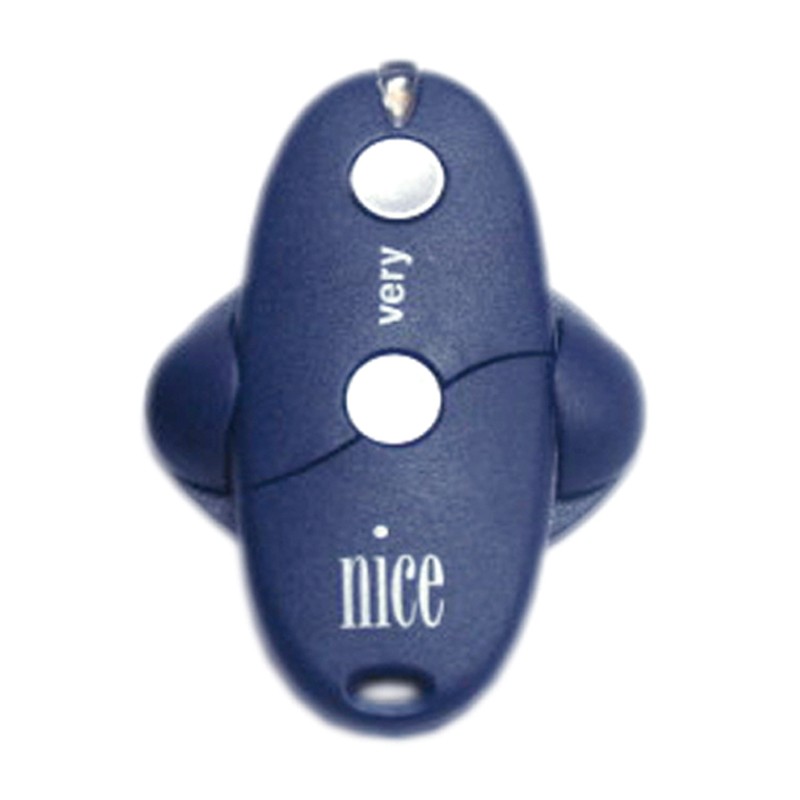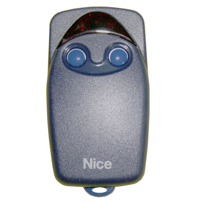 Mando de garaje marca NICE, modelo VERY VE de 2 botones color gris. La frecuencia de este mando es 433,92 MHz y la codificación se realiza por sistema de auto-aprendizaje.
