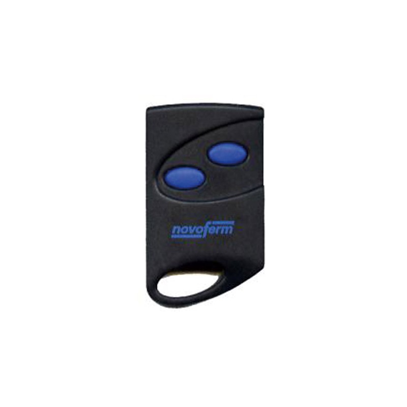 Mando de garaje marca NOVOFERM, modelo MCHS43-2 de 2 botones color azul. La frecuencia de este mando es 433,92 MHz y la codificación se realiza por sistema de grabación en el receptor.