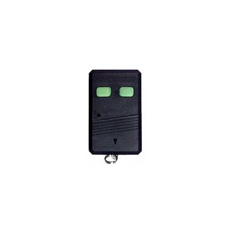Mando de garaje marca NOVOFERM, modelo MS41-2 de 2 botones color verde. La frecuencia de este mando es 40,685 MHz y la codificación se realiza por sistema de switch.