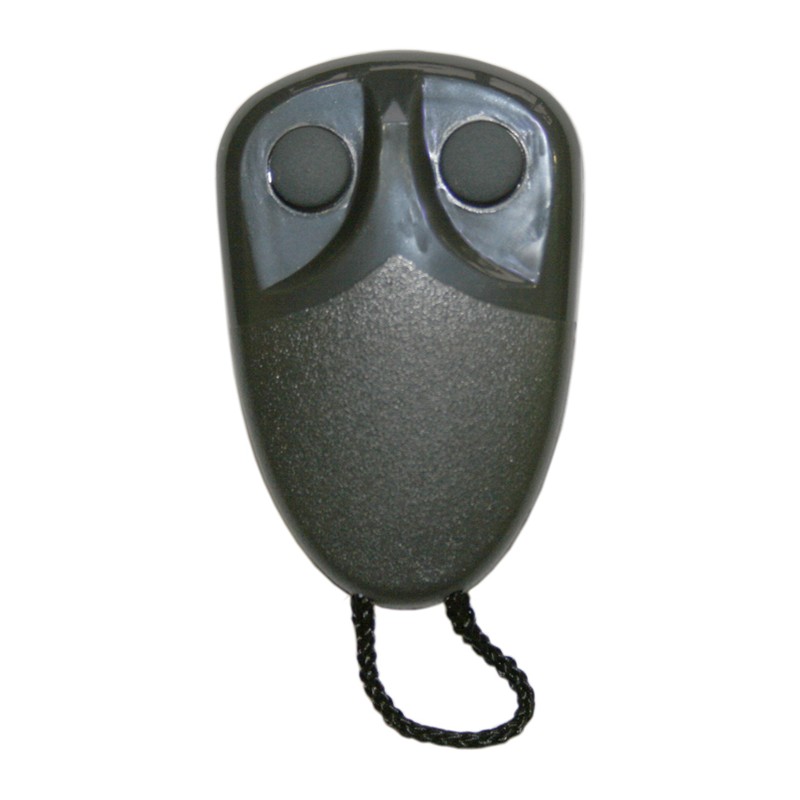 Mando de garaje marca PRASTEL, modelo MPSTP2E de 2 botones color gris. La frecuencia de este mando es 433,92 MHz y la codificación se realiza por sistema de grabación en el receptor.
