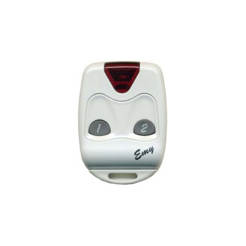 Mando de garaje marca PROGET, modelo EMY433 2N de 2 botones color gris. La frecuencia de este mando es 433,92 MHz y la codificación se realiza por sistema de 10 switch.