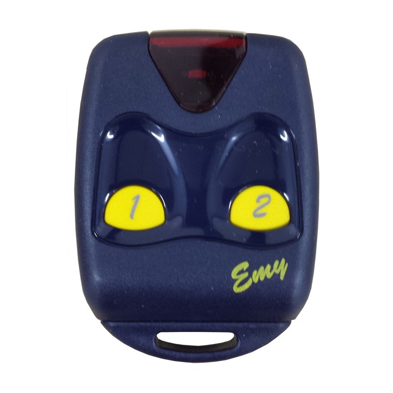 Mando de garaje marca PROGET, modelo EMY 2F 433 de 2 botones color amarillo. La frecuencia de este mando es 433,92 MHz y la codificación se realiza por sistema de grabación en el receptor.