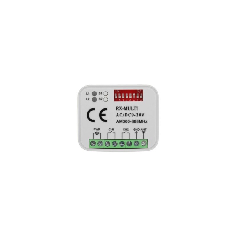 RX-MULTI es un receptor multifrecuencia universal con hasta 400 códigos, tanto con mandos ORIGINALES o COMPATIBLES, comprende las frecuencias 300/433/868 MHz en formato AM como FM