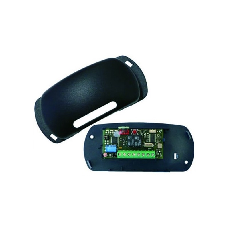 Receptor universal BRO22 LED de ALLMATIC, con tecnología Rolling Code, conectable a cualquier cuadro de maniobra Allmatic o de otra marca con salida de 12/24V. Frecuencia de trabajo 433,92MHz a 2 canales.