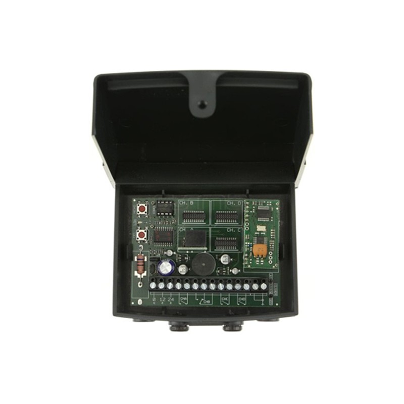 Receptor CARDIN S449 RX 4CH / RCQ449100 R4. Con salida de 12/24V. Frecuencia de trabajo 433,92MHz EVOLUTIVO de hasta 300 códigos a 1 + 3 OPCIONAL canales.