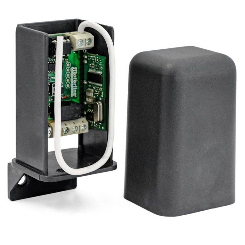 Receptor MR17 de la marca MOTORLINE. Frecuencia de trabajo 433.92 MHz. Código EVOLUTIVO TIPO KEELOG para 500 códigos. Consta de 1 canal.