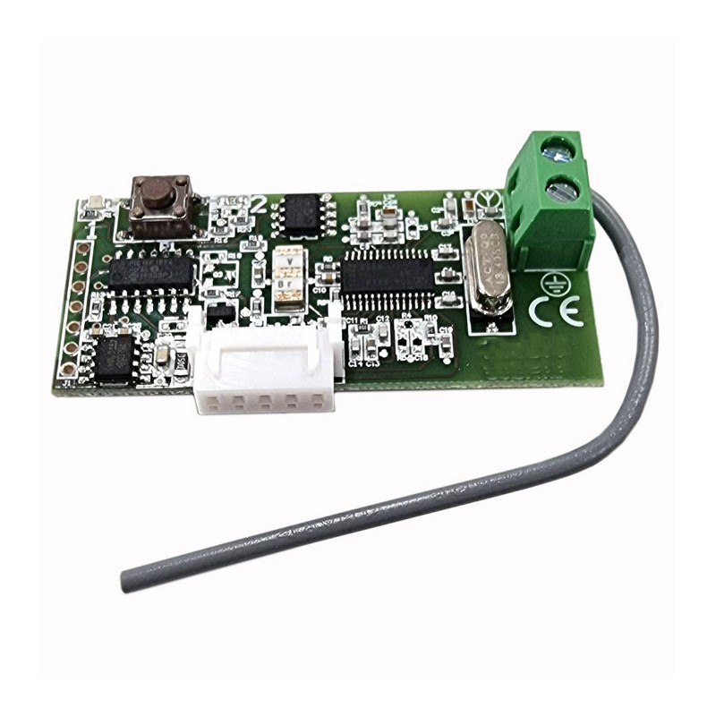 Receptor ENCHUFABLE RX23P5 con 5 pines de la marca LYRA. Frecuencia de trabajo 868 MHz de código fijo. Almacena 650 códigos. Consta de 2 canales.