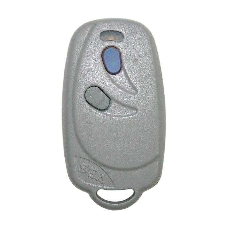Mando de garaje marca SEA, modelo 433-SMART-2 de 2 botones color distintos colores. La frecuencia de este mando es 433,92 MHz y la codificación se realiza por sistema de grabación en el receptor.