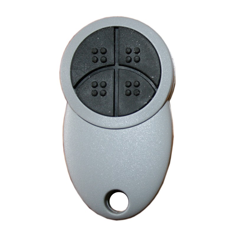 Mando de garaje marca TELECO, modelo TXP-868-A04 de 4 botones color negro. La frecuencia de este mando es 868,3 MHz y la codificación se realiza por sistema de grabación en el receptor.