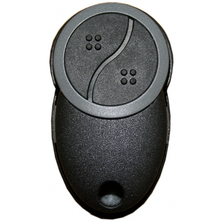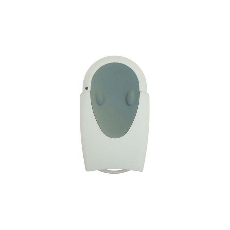 Mando de garaje marca TELECO, modelo TXR-433-A02 de 2 botones color gris. La frecuencia de este mando es 433,92 MHz y la codificación se realiza por sistema de grabación en el receptor.