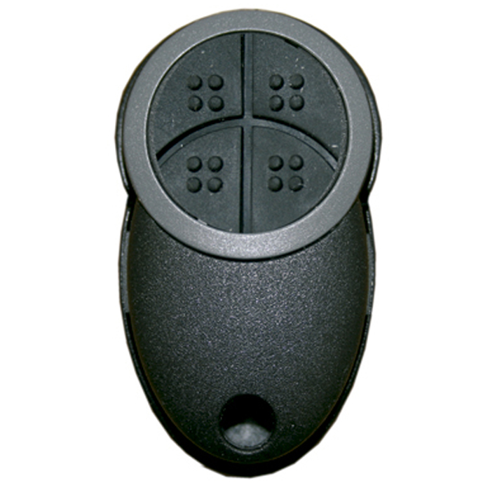 Mando de garaje marca TELECO, modelo TXR-433-A04 blue de 4 botones color azul. La frecuencia de este mando es 433,92 MHz y la codificación se realiza por sistema de grabación en el receptor.