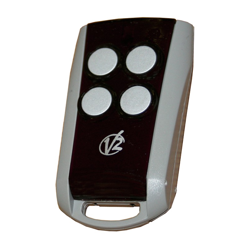 Mando de garaje marca V2, modelo PHOENIX4 de 4 botones color gris. La frecuencia de este mando es 433,92 MHz y la codificación se realiza por sistema de grabación en el receptor.