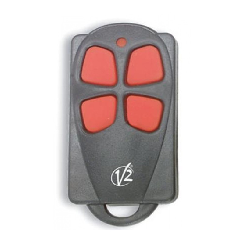 Mando de garaje marca V2, modelo TRC 2 CONTR. 47 de 4 botones color rojo. La frecuencia de este mando es 433,92 MHz y la codificación se realiza por sistema de grabación en el receptor.