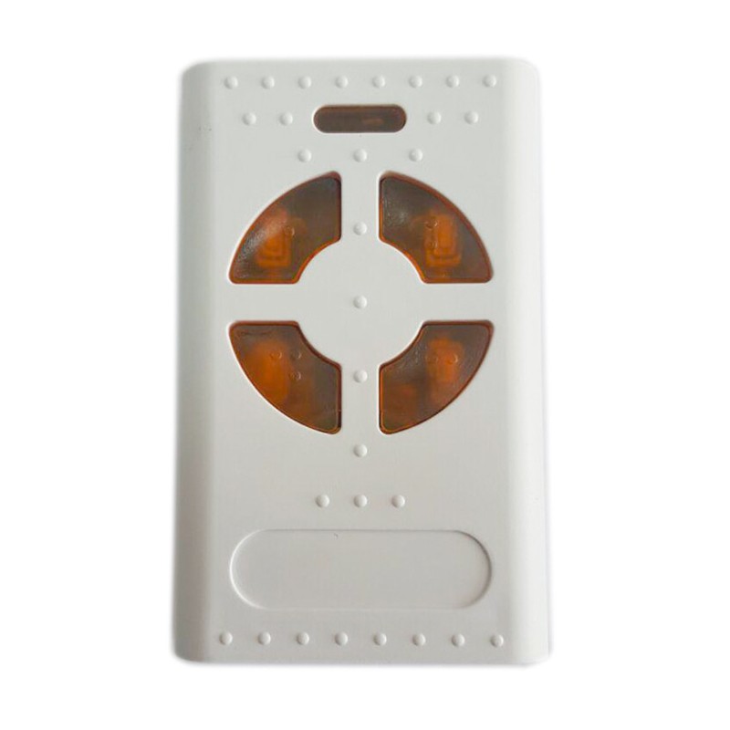 Mando de garaje marca VDS, modelo TX Multi 4 de 4 botones color amarillo o naranja. La frecuencia de este mando es 433,92 MHz y la codificación se realiza por sistema de grabación en el receptor.